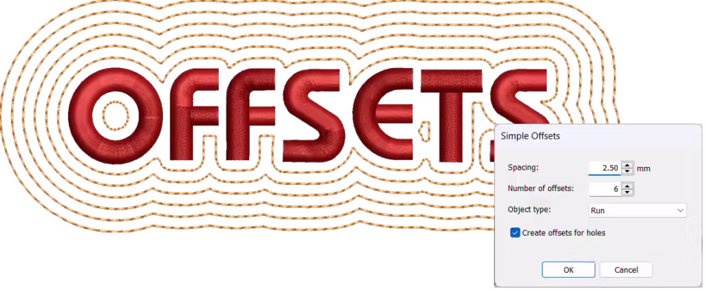 Fügen Sie mit einem Klick einfache Versätze und Umrandungen hinzu. Erstellen Sie Ränder mit Lauf-, Dreifachlauf- oder Satinstich.