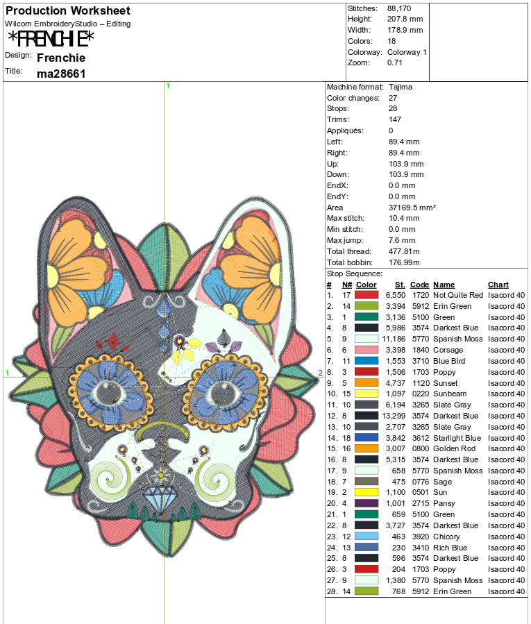 Auf den Arbeitsblättern für die Produktion sind Größe, Farben und Reihenfolge der Entwürfe eindeutig festgelegt.